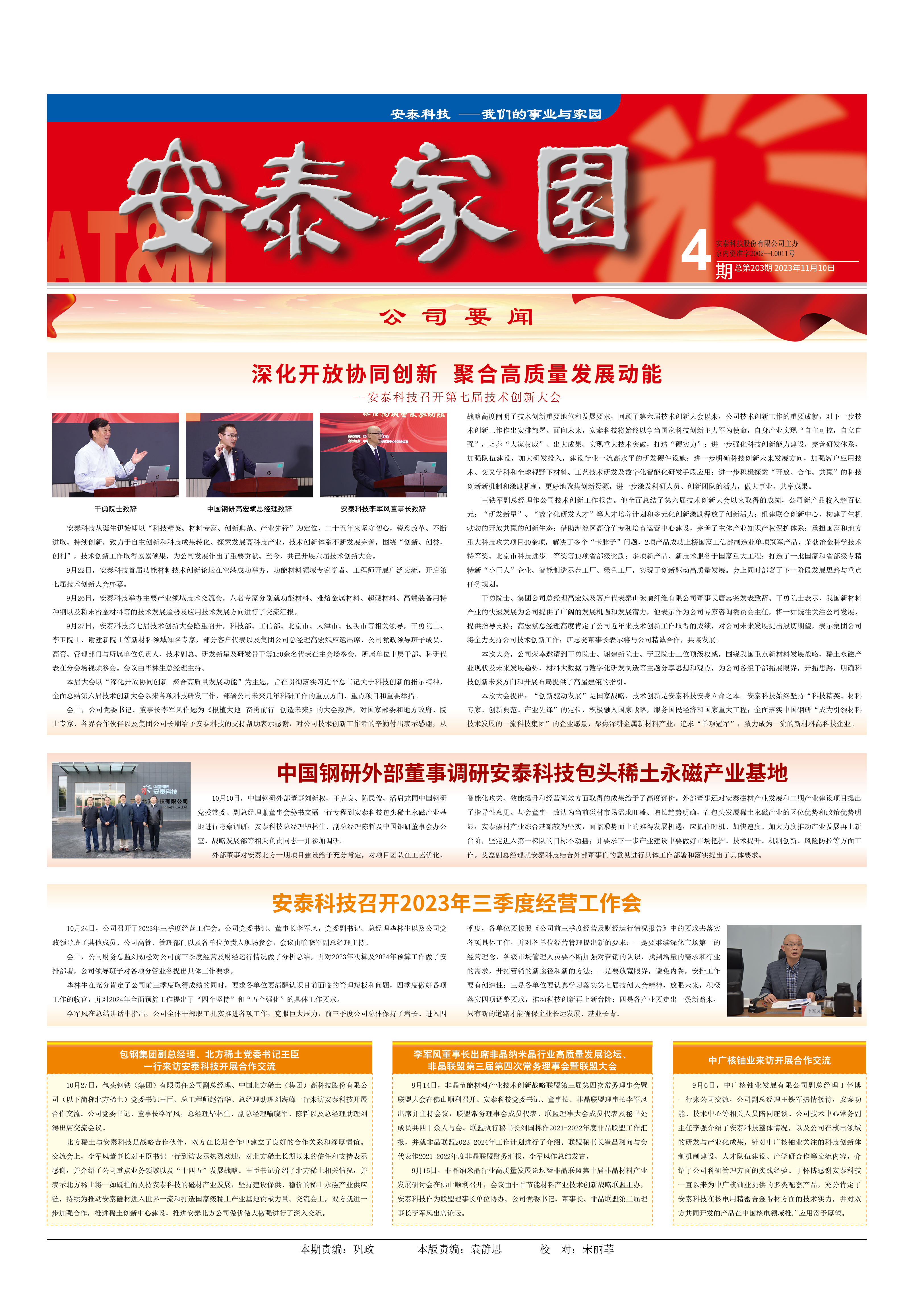本次大會(huì)提出:“創(chuàng)新驅(qū)動(dòng)發(fā)展”是國家戰(zhàn)略,技術(shù)創(chuàng)新是安泰科技安身立命之本。安泰科技始終堅(jiān)持“科技精英、材料專家、創(chuàng)新典范、產(chǎn)業(yè)先鋒”的定位,積極融入國家戰(zhàn)略,服務(wù)國民經(jīng)濟(jì)和國家重大工程;全面落實(shí)中國鋼研“成為引領(lǐng)材料技術(shù)發(fā)展的一流科技集團(tuán)”的企業(yè)愿景,聚焦深耕金屬新材料產(chǎn)業(yè),追求“單項(xiàng)冠軍”,致力成為一流的新材料高科技企業(yè)。